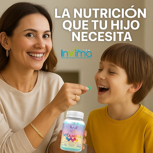 MULTIVITAMINICO EN GOMITAS PARA NIÑO: COMPLEJO B, VITAMINA C + enrriquecidas con hierro, calcio, zinc y fosforo.
